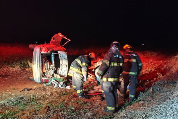 Motorista perde controle e capota veículo na alça de acesso do Jardim Tangará