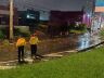 Na rotatória do Cristo, houve alagamento devido ao entupimento de bueiros. A Guarda Municipal e equipes do Serviço Autônomo de Água e Esgoto (SAAE) atuaram rapidamente no local, realizando a limpeza e a desobstrução da via, o que permitiu a normalização do tráfego.
