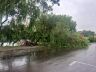 A forte chuva que atingiu São Carlos na tarde desta terça-feira, 9, provocou a queda de várias árvores em diversos pontos da cidade. Uma das ocorrências aconteceu na Rua Capitão Alberto Mendes Júnior, na Vila Costa do Sol, onde um exemplar do tipo “chorão” cedeu e acabou interditando metade da via.