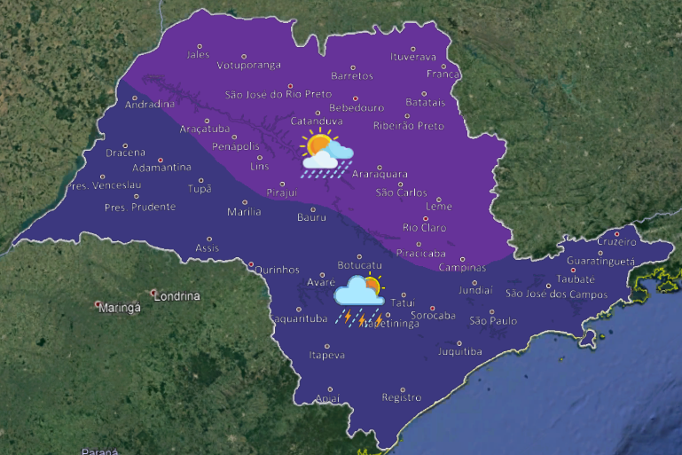Céu de São Carlos na manhã desta quinta-feira - Crédito: SCASegundo o Instituto de Pesquisas Meteorológicas - IPMet de Bauru, uma frente fria desloca-se pelo oceano, próximo ao litoral paulista, ocasionando muita nebulosidade e chuvas com trovoadas isoladas, principalmente nos setores oeste, sul e leste do estado. As temperaturas diminuem, dando uma trégua ao forte calor dos últimos dias. Em São Carlos existe pequena possibilidade de chuva fraca e a temperatura máxima não deve passar dos 31ºC. A umidade relativa do ar aumenta em relação aos últimos dias.