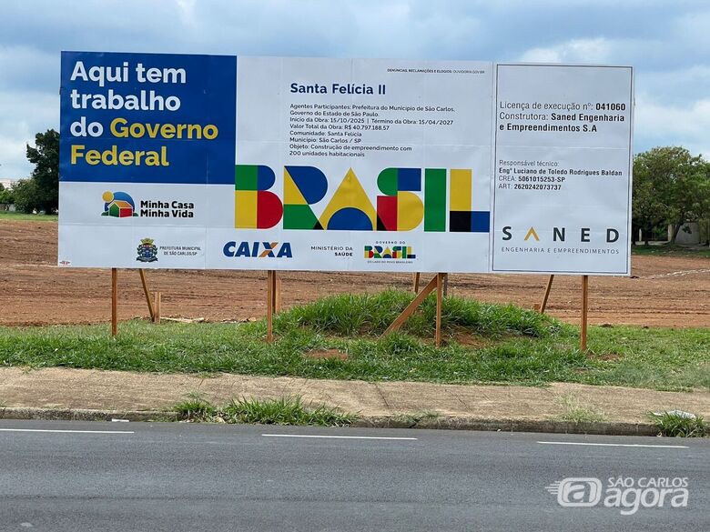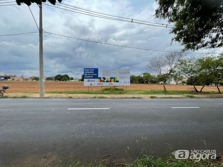 Local onde está sendo realizada a obra - Crédito: Lourival Izaque Mesmo diante de reclamações e protestos de moradores da região, o Governo Federal deu início recentemente às obras de um conjunto habitacional com 200 unidades na avenida Bruno Ruggiero Filho, em São Carlos. O empreendimento integra o programa Minha Casa Minha Vida e será chamado de Santa Felícia II. A obra está em fase de terraplanagem e demarcação do solo.