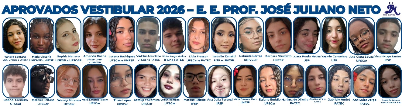 A Escola Estadual Juliano Neto alcançou um resultado expressivo em 2026 ao registrar 52 aprovações em universidades públicas e programas de acesso ao ensino superior, somando conquistas por meio do Enem, vestibulares tradicionais, como Unesp e também pelo Provão Paulista.