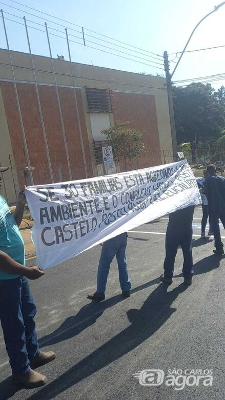 Moradores fizeram uma manifestação defronte ao Fórum Cível nesta quinta-feira - Crédito: ColaboradorEm meio à apreensão e incerteza, cerca de 40 famílias do Recanto das Oliveiras, às margens da Washington Luís (SP-310), em São Carlos, se mobilizam para evitar a demolição de suas casas, prevista para o dia 1º de julho. Uma decisão judicial determina a desocupação do local, considerado área de preservação permanente.