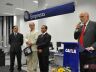 O prefeito Oswaldo Barba participou da inauguração das novas instalações da agência Alexandrina da Caixa Econômica Federal em São Carlos que ocorreu nesta terça-feira (9). Durante solenidade que reuniu o superintendente regional da Caixa, Isaac Samuel dos Reis, o gerente da agência Alexandrina da Caixa Juraci Vasconcelos, o vice-prefeito Emerson Leal, os secretários municipais Paulo Almeida (Fazenda), Rosoé Donato (Planejamento), João Muller (Prohab) e dezenas de convidados, o prefeito salientou a importância da parceria com a Caixa Econômica Federal para a execução de diferentes projetos em São Carlos. “A Caixa é a nossa grande parceira. Nossa cidade é um dos municípios que possuem mais convênios com a Caixa Econômica Federal. E esta parceria exige um grande esforço da Caixa e da Prefeitura. Mas este trabalho tem resultados muito positivos e um deles é a construção de casas populares através do programa Minha Casa, Minha Vida que permitirão que os futuros contemplados tenham acesso à moradia com o pagamento de parcelas de até R$ 50,00”.
