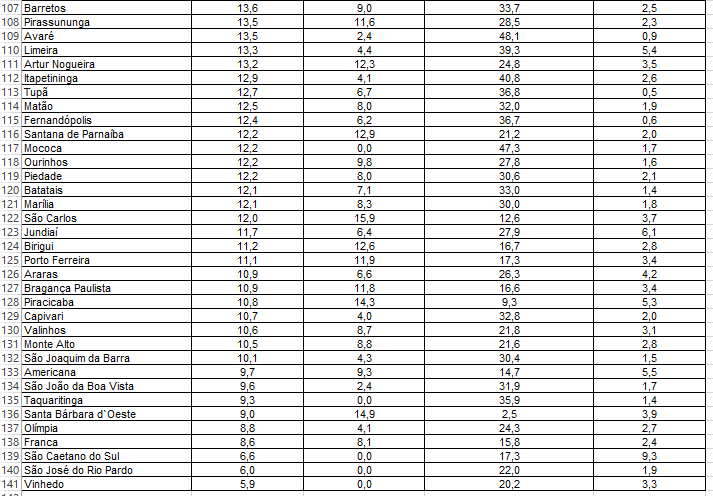 Na região, Rio Claro ocupa a 45º posição e Araraquara aparece no 53º lugar na lista.