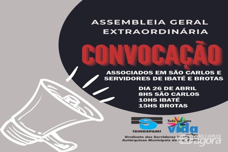 No mesmo dia 26 de abril o Sindspam convoca todos os servidores de Ibaté para assembleia às 10h em 1ª convocação com quórum de instalação de metade mais um dos servidores, empregados públicos e autárquicos, da Prefeitura Municipal, da Câmara Municipal, Autarquias Municipais, Fundações Públicas Municipais e Empresas Públicas e Mistas Municipais, ativos e inativos no município, ou meia hora após em segunda e última convocação com qualquer número de presentes a realizar-se na Avenida Santa Rufina, 141, Vila Tamoio (Grêmio Recreativo de Ibaté - Grei), Ibaté.