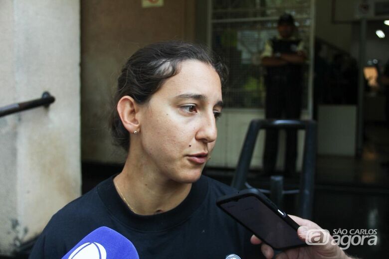 Luisa Baptista defronte ao Fórum Criminal - Crédito: Lourival Izaque Na manhã desta quarta-feira (15), por volta das 10 horas, o Tribunal do Júri da Comarca de São Carlos, sob a presidência do juiz Dr. Cláudio do Prado Amaral, reuniu os sete jurados do Conselho de Sentença, o promotor público Dr. Marco Aurélio Bernarde de Almeida e o advogado criminalista Dr. Roquelaine Batista dos Santos para levar ao banco dos réus o homem acusado de provocar o acidente que quase tirou a vida da triatleta Luísa Batista.