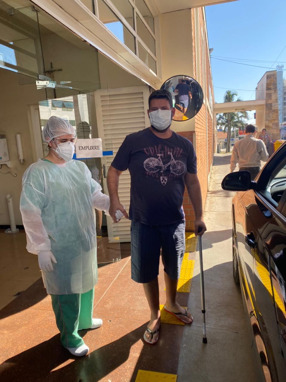 Momento em que policial deixa o hospital após vencer a Covid-19. (arquivo pessoa)O investigador da Polícia Civil Lúcio José Valenti, 39, venceu a Covid-19 após ficar 15 dias internado. Neste tempo ele permaneceu 11 dias na Unidade de Terapia Intensiva (UTI), sendo seis deles intubado. Na manhã de hoje colegas de trabalho fizeram uma homenagem da porta da Santa Casa de São Carlos.