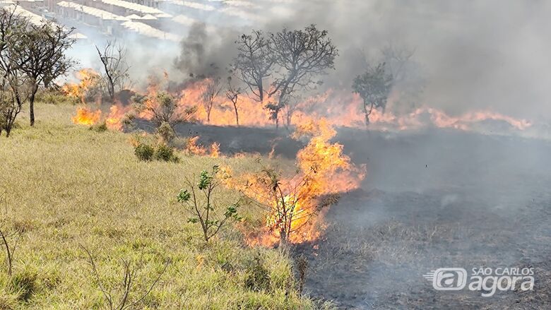 Na manhã desta terça-feira (9), equipes do Corpo de Bombeiros de São Carlos foi acionadas para combater um incêndio de grandes proporções em um descampado localizado entre os bairros Jardim Hikare e Jardim Santa Felícia.