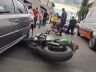 Com o impacto, o motociclista foi arremessado ao solo, enquanto a moto, foi lançada para debaixo de um Astra que estava estacionado regularmente na via.