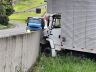 Na sequência, para evitar um acidente de maiores proporções, o motorista do caminhão jogou o veículo para o canteiro central, onde colidiu contra a defensa de concreto que separa as pistas da rodovia.