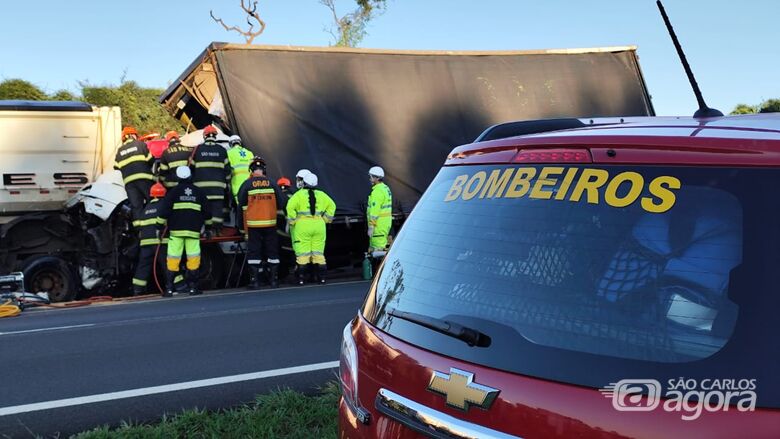 O motorista do caminhão de papelão ficou preso nas ferragens. Equipes do Corpo de Bombeiros, além da concessionária responsável pelo trecho fizeram o resgate da vítima que foi encaminhada até a Santa Casa de São Carlos o estado de saúde não foi informado.