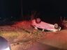 De acordo com as informações, o condutor tentou acessar uma estrada de terra às margens da rodovia, mas o carro passou sobre um barranco e acabou tombando.