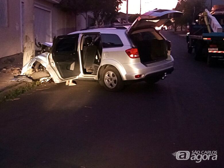 Crédito: Lourival IzaqueUm carro colidiu contra um poste no final da madrugada deste sábado (23), na rua Gipsy Garcia Ferreira, no Jardim das Torres, em São Carlos.