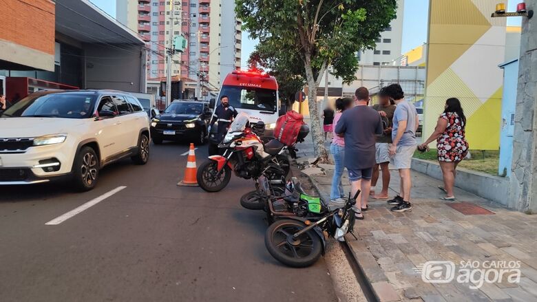 Crédito: Maycon MaximinoUma colisão entre carro e moto foi registrada no final da tarde desta terça-feira (25)na Rua Episcopal, entre as ruas 15 de Novembro e São Sebastião, no Centro de São Carlos.