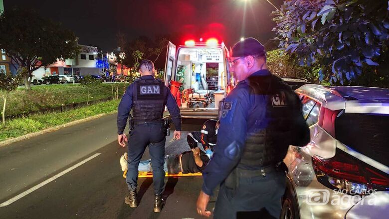 O homem foi atendido pelo SAMU com suspeita de trauma no ombro e ferimentos na face, sendo encaminhado à Santa Casa de São Carlos para atendimento médico.