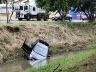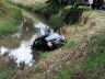 Com o impacto, o veículo rodou na pista, a motorista perdeu o controle da direção e o automóvel acabou caindo no córrego existente às margens da via.