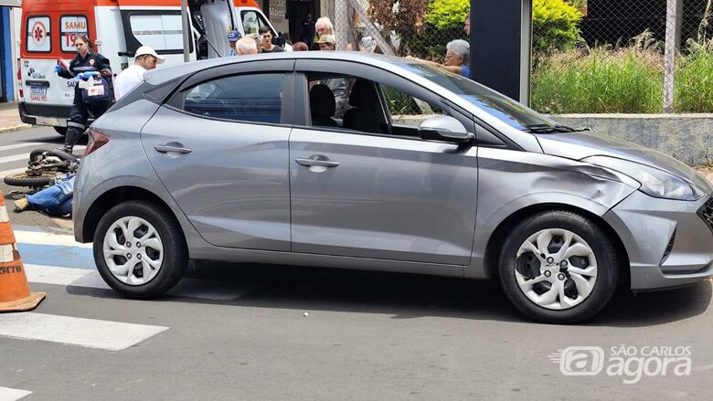 Crédito: Maycon Maximino Uma colisão entre um carro e uma motocicleta foi registrada na área central de São Carlos, na rua Riachuelo. Ambos os veículos seguiam pela via quando, ao tentar fazer a conversão para a rua General Osório, o condutor do carro acabou sendo atingido na lateral pelo motociclista.