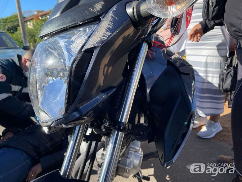 Vítima foi arremessada ao solo - Crédito: Lourival Izaque Uma colisão envolvendo um carro e uma motocicleta deixou uma mulher ferida na manhã desta sexta-feira (24), na região do CDHU, em São Carlos.