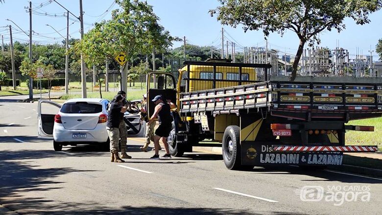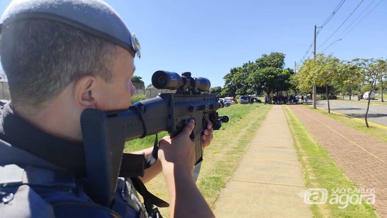 Movimentação no local da simulação - Crédito: Maycon MaximinoA Companhia de Força Tática do 38º BPM/I realizou, na manhã desta quinta-feira (6), um treinamento tático para simulação de roubo a carro-forte. A atividade ocorreu na Avenida José Antônio Santilli, na região do Pico, próximo ao Shopping Iguatemi, em São Carlos, e teve como objetivo preparar os policiais para o enfrentamento desse tipo de crime, que envolve grande poder de fogo e alto risco à população.