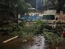 De acordo com informações, o veículo estava parado quando os galhos se desprenderam devido à intensidade do vento e da chuva. Apesar do susto, ninguém ficou ferido.