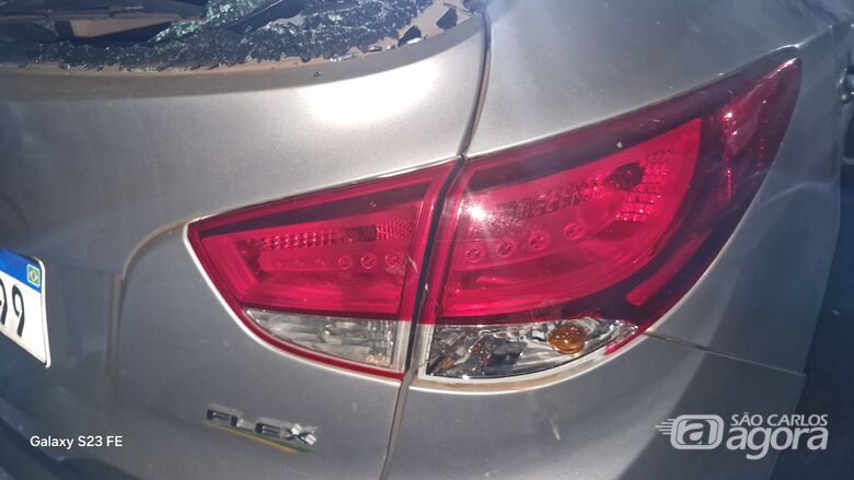 Ao chegar ao local, a equipe constatou que o carro estava com o vidro traseiro e uma das lanternas danificados.