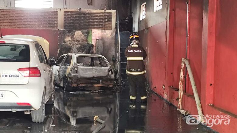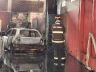 De acordo com informações iniciais, as chamas se espalharam rapidamente pelo interior do barracão, atingindo parte da estrutura e veículos que estavam estacionados no local.