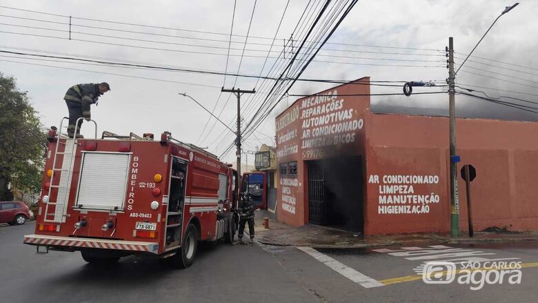 Crédito: Maycon Maximino Um incêndio ocorre neste momento em um barracão localizado na Avenida José Pereira Lopes, em frente à Electrolux, em São Carlos. O imóvel abriga um estabelecimento comercial, uma oficina mecânica que trabalha com carburadores.