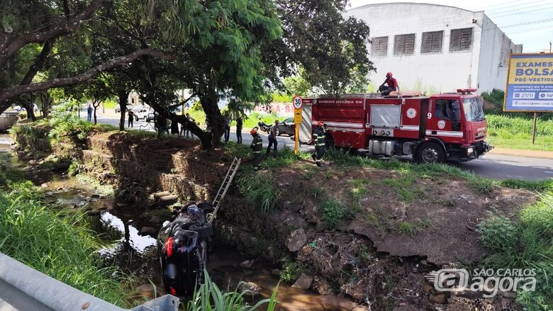 Crédito: Maycon MaximinoNa tarde desta quinta-feira, 27, uma BMW X6 caiu em um córrego localizado na Avenida Comendador Alfredo Maffei, em São Carlos. O veículo era conduzido por um mecânico de 25 anos, que testava o carro de um cliente.