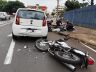 O motociclista acabou colidindo fortemente contra a traseira do veículo. Com o impacto, ele foi arremessado por cima do carro, parando na parte dianteira do automóvel.