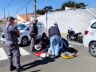 Com o impacto da batida, o condutor da moto foi arremessado ao solo e relatou fortes dores na região das costelas. A força da colisão foi tamanha que a manopla do guidão ficou presa na lataria do veículo.