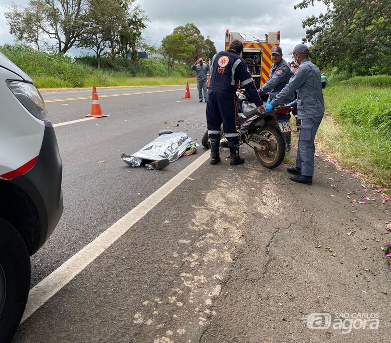 Crédito: Foto: SCAUm motociclista ainda não identificado morreu na manhã deste sábado (7), após colidir na traseira de caminhão carregado com cimento na rodovia Dr Paulo Lauro (SP-215), próximo a entrada do bairro Novo Horizonte, em São Carlos.