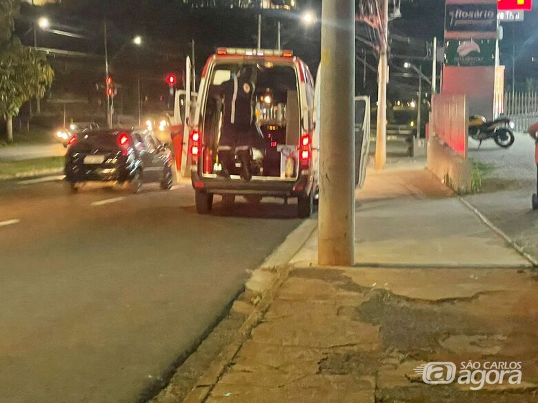 Vítima sendo socorrida - Crédito: Lourival Izaque Um motociclista de 20 anos ficou ferido após um acidente de trânsito registrado na noite deste sábado (28), na Avenida Tancredo Neves, sentido Santa Felícia, em São Carlos.