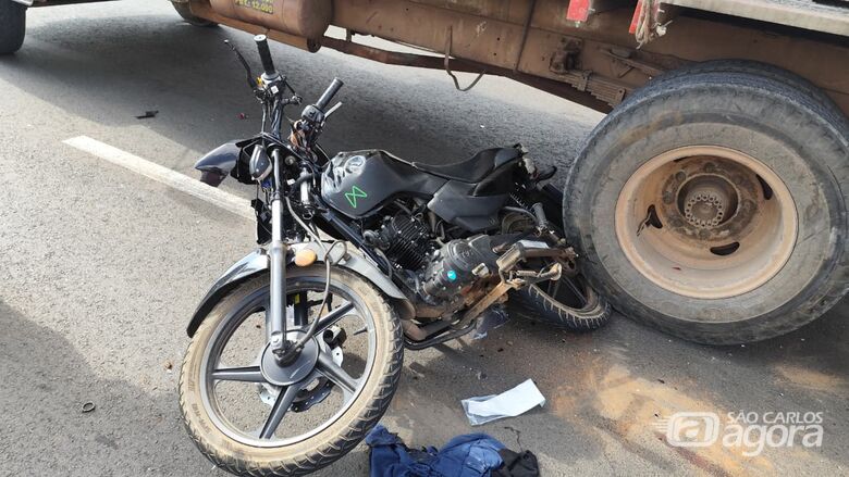 A vítima seguia no sentido rodovia/Praça Itália quando, por motivos ainda a serem apurados, colidiu contra um caminhão em frente ao Spani Atacadista.
