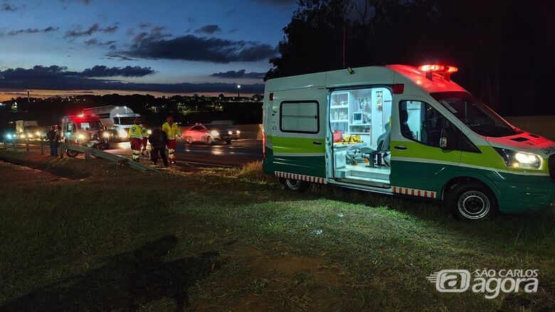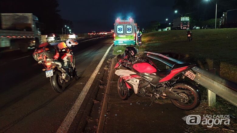 Local do acidente - Crédito: Maycon Maximino Um motociclista de 53 anos ficou ferido após sofrer uma queda na Rodovia Washington Luís, na altura do quilômetro 235, defronte ao Hospital Universitário. O acidente ocorreu na noite desta quarta-feira, dia 16.