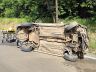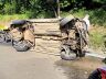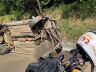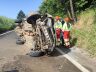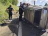 Na sequência, o carro subiu no barranco e acabou tombando.