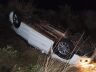 O carro rodou na pista, cruzou para o sentido contrário da rodovia, subiu em um barranco e capotou várias vezes, parando no canteiro lateral do lado oposto.