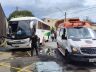 A equipe do SAMU foi acionada e compareceu ao local para atendimento de emergência, porém, apesar do susto, ninguém ficou ferido. A ocorrência resultou apenas em danos materiais no ônibus.