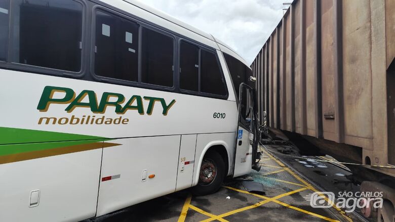 Crédito: SCAUma ma colisão envolvendo um ônibus e um trem foi registrada no bairro CDHU na tarde desta terça-feira (27). O ônibus realizava o transporte de trabalhadores da Latam e seguia no sentido Cruzeiro do Sul–CDHU.
