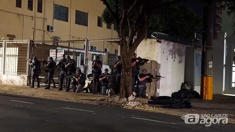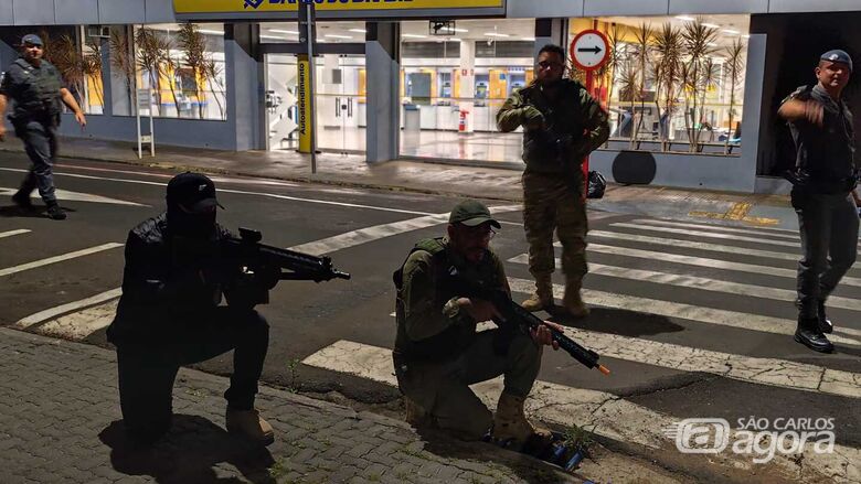 Crédito: Maycon MaximinoNa noite desta segunda-feira (29), a Polícia Militar de São Carlos, por meio da Companhia de Força Tática, promoveu um simulado de atendimento a crimes ultraviolentos. A atividade foi realizada às 19h, na Agência da Caixa Econômica Federal, localizada na Rua Conde do Pinhal, nº 2142, no centro da cidade.