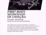 Workshop de criação First Body, com foco em práticas de teatro, dança e performance.