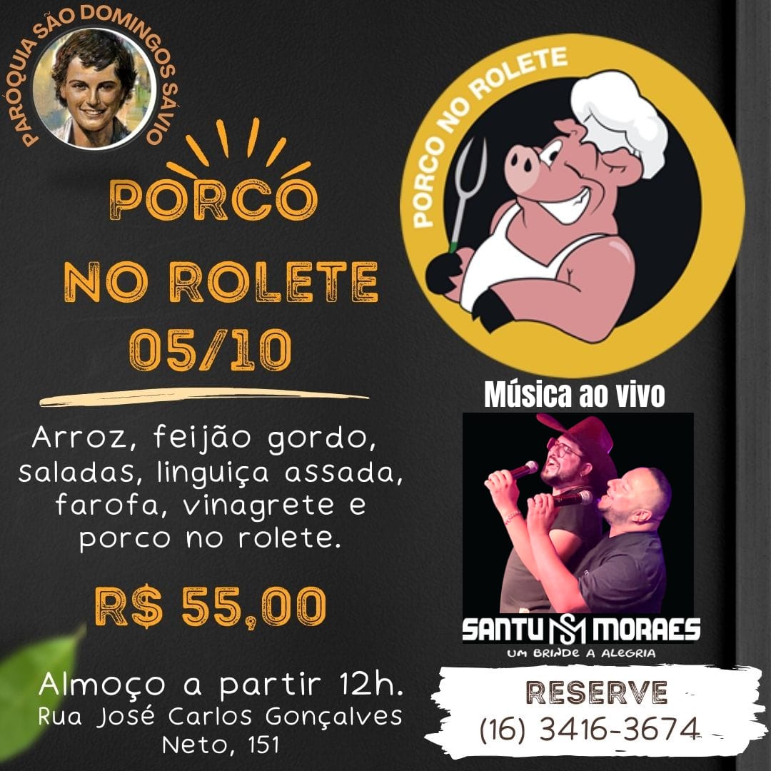Paróquia São Domingos Sávio - A Paróquia São Domingos Sávio promove neste domingo (5) um almoço especial com porco no rolete, a partir das 12h, em sua sede localizada na Rua José Carlos Gonçalves Neto, 151.