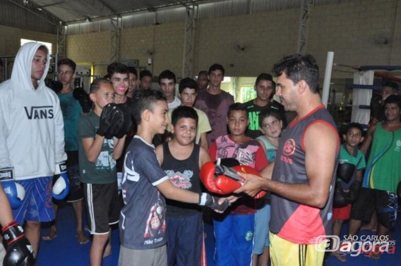 Foto: Divulgação - A Prefeitura Municipal de Ibaté, através do Departamento de Esporte, realizou a entrega de novos materiais esportivos. Os alunos de Boxe da Academia Municipal receberam luvas, cordas, teto solo MKS e pushing bal knockout, conhecido também como peras.