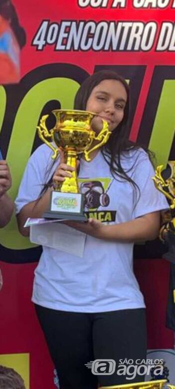 A jovem Ana Júlia Tello, de 14 anos, foi uma das grandes vencedoras na categoria Juvenil de 11 a 15 anos, da 4ª Copa São Paulo de Carrinhos de Rolimã, realizada neste domingo (20) em São Carlos. Com sete anos de experiência na modalidade, Ana Júlia repetiu o feito do ano passado, quando conquistou o primeiro lugar na mesma competição, além de já ter ficado em segundo lugar em uma etapa em Piracicaba, em agosto de 2024.