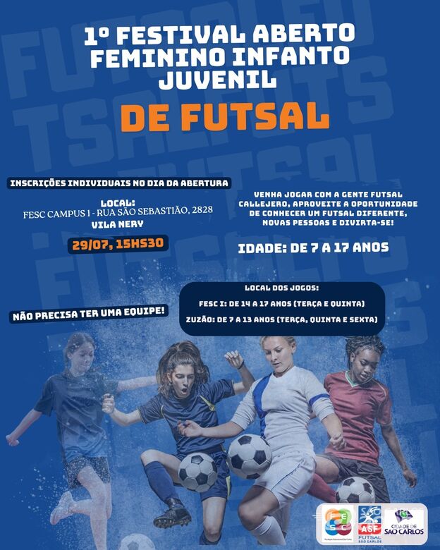 As inscrições são gratuitas e realizadas presencialmente no local, no momento da abertura. O festival será realizado na FESC, localizada na Rua São Sebastião, 2.828, na Vila Nery, e está aberto para meninas de 7 a 17 anos.