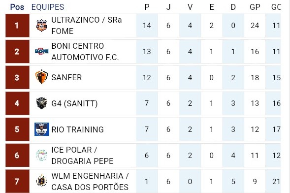 Após a 7ª rodada, foram conhecidas as equipes semifinalistas e o G4, mesmo sendo derrotado pelo já eliminado Ice Polar/Drogaria Pepe por 5 a 2, garantiu a quarta colocação. O time se beneficiou pelo empate entre Rio Training e Ultrazinco/Sra. Fome em 4 a 4.