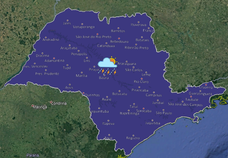 A condição de estabilidade retorna gradualmente ao estado de São Paulo, ocasionando céu claro a parcialmente nublado e sem chuva no período da manhã, em várias regiões paulistas. Contudo, pancadas de chuva isoladas ainda se formam em algumas localidades no decorrer do dia, principalmente nas faixas norte e leste do estado. Temperaturas em gradativa elevação.