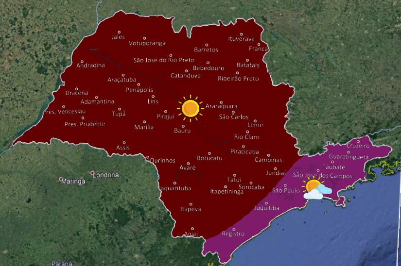 Tempo firme no estado de São Paulo, com predomínio de sol e sem previsão de chuva. Temperaturas elevadas. (Fonte IPMET)