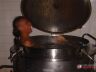 Nas fotos enviadas é possível ver um estudante tomando banho dentro de uma caldeira usada no cozimento de arroz e feijão.