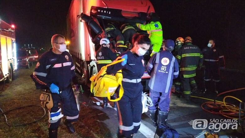 Crédito: Maycon MaximinoUm acidente entre dois caminhões na rodovia Washington Luís, em São Carlos, deixou um morto na noite desta quinta-feira (24).O acidente ocorreu no quilômetro 227, no local conhecido como subida da líquigas.